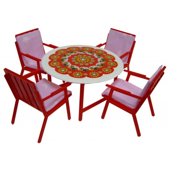 Mebelki dla lalek / 4 krzesełka + stolik 03