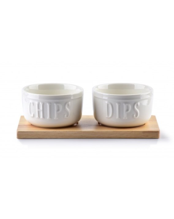 Miseczki 2szt. biała porcelana z drewnianą deską