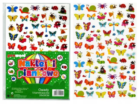 Naklejki piankowe owady 20 x 30 cm 5 kartek
