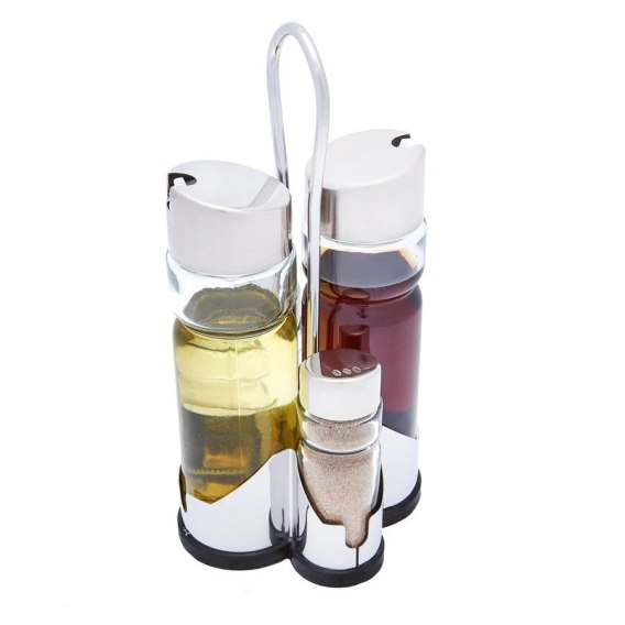 Organizer na podstawowe przyprawy, które znajdą się na twoim stole, to bardzo praktyczny dodatek do kuchni. Dzięki niemu zawsze można mieć je pod ręką, gdy zajdzie potrzeba doprawienia potraw. Sam zestaw jest także gustowną ozdobą stołu i charakteryzuje się nowoczesnym wzornictwem.
