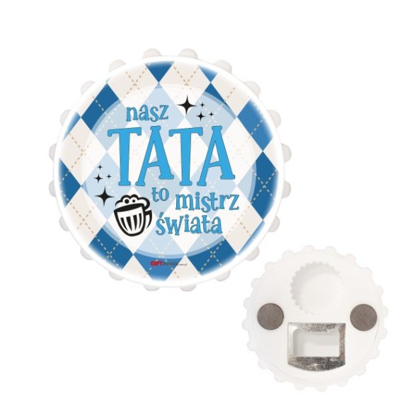 Otwieracz w kształcie kapsla Nasz Tata to Mistrz Świata 7 cm
