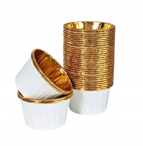 Papilotki kubeczki BIAŁO ZŁOTE 50x40 mm / 50 szt 9721