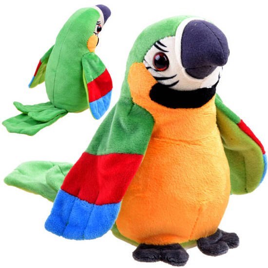 Kolorowa, pluszowa Papuga pleciuga powtórzy wszystko co jej powiesz! Uroczy, kolorowy ptak ma funkcje odtwarzania tego, co się do niej mówi w komiczny sposób. Zabawka wykonana z kolorowego, miękkiego materiału posiada funkcje nagrywania i odtwarzania dźwięków. Wesoła zabawka, która powtórzy wszystko co jej powiesz, także uważaj i nie zdradzaj przy niej żadnej tajemnicy, bo wygada od razu! Kolorowa papuga słucha co do niej mówisz, a potem wszystko powtarza. Po włączeniu papugi, nagrywa wszystkie dźwięki, powtarzając dane słowa głośno i wyraźnie. Wesoła ptaszyna rozbawi każdego! Można ją postawić na półce i zaskoczyć koleżanki kolegów!