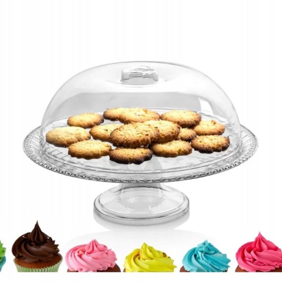 Patera z kloszem na nóżce 34 cm pojemnik z pokrywką na ciasto tort owoce osłona