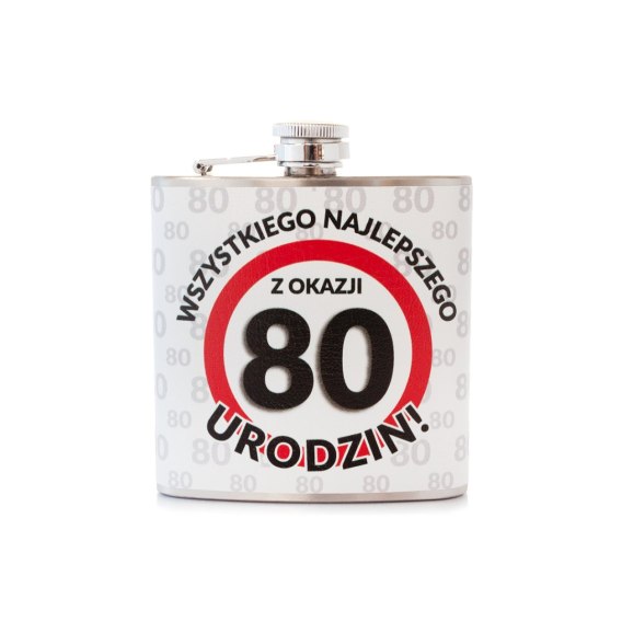 Piersiówka ze stali nierdzewnej "Wszystkiego Najlepszego z Okazji 80 Urodzin"