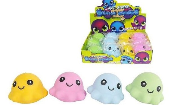 Piłeczka ośmiornica do ściskania 8cm 4-kolory 12szt