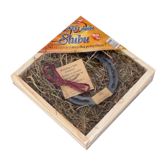 Podkowa W DNIU ŚLUBU w pudełku z siankiem