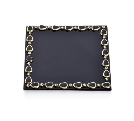 Podstawka dekoracyjna wykonana z lustra i elementów ozdobnych. Świetnie się sprawdzi jako baza do dekoracji stołu. Idealnie nadaje się do trzymania na niej świec. Bogate zdobienia sprawiają, że nada wyrazu każdemu wnętrzu.
