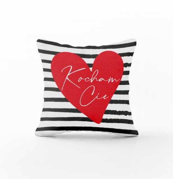 Poduszka KOCHAM CIĘ biało czarne paski 45 x 45 cm