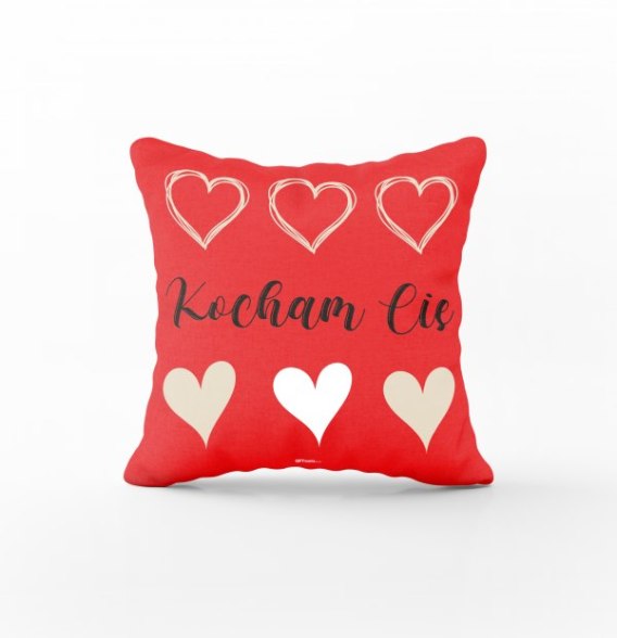 Poduszka KOCHAM CIĘ , czerwona serca 45 x 45 cm