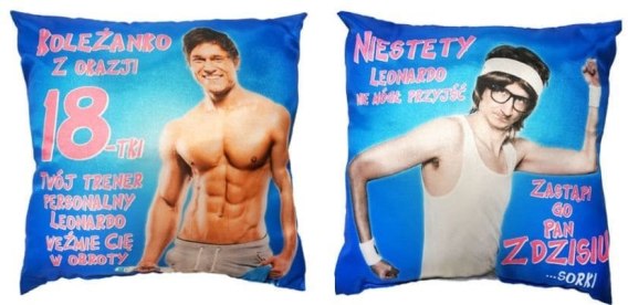 Poduszka zapakowana w folię, idealnie nadaje się jako prezent główny jak i upominek (dodatek) do prezentu.