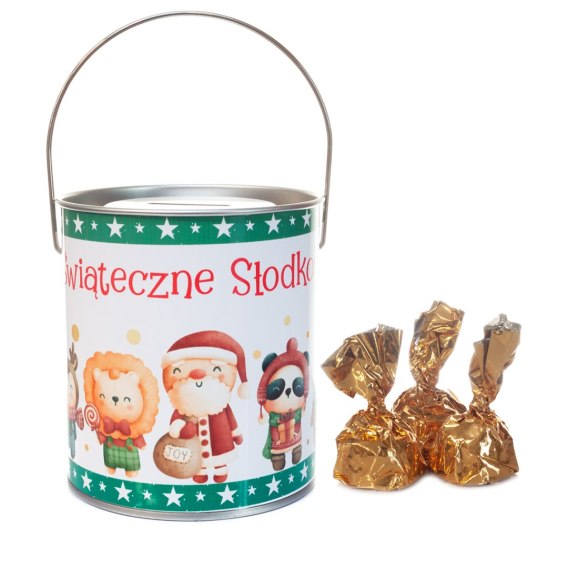 Pralinki - skarbonka z wciskanym wieczkiem i uchwytem " Świąteczne słodkości " - zielone - 10szt.