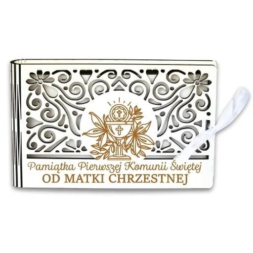Pudełko na pieniądze banknotówka KOMUNIA - od MATKI CHRZESTNEJ - Ażur 3302A-KOM1B-MC