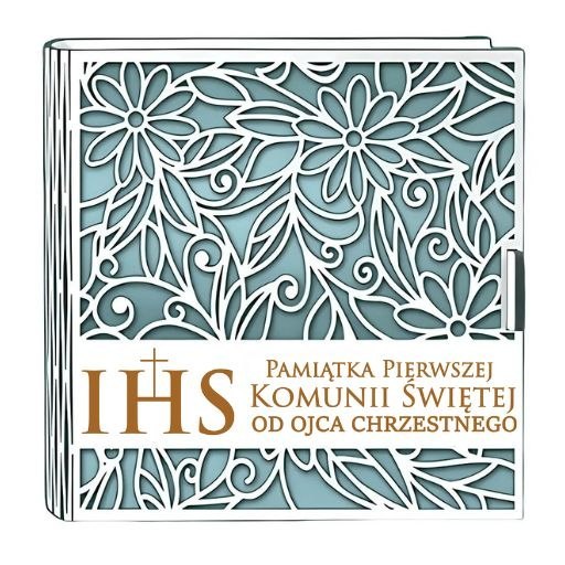 Pudełko na pieniądze kwadrat KOMUNIA - od OJCA CHRZESTNEGO - Ażur 3308A-KOM2N-OC