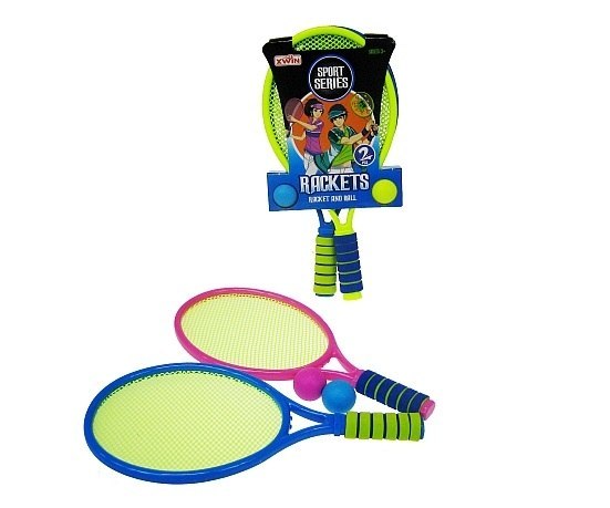 Rakietki o wymiarach 43x20cm w zestawie z dwoma plastykowymi piłeczkami o średnicy 4,5cm .