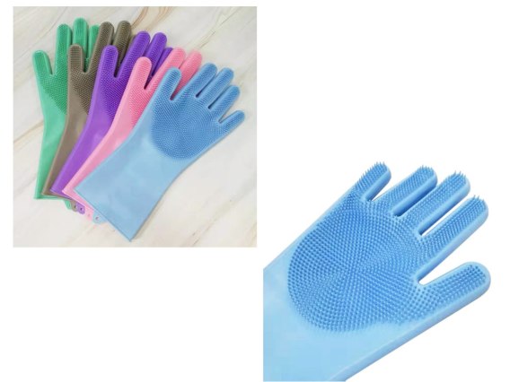 Rękawice gumowe, silikonowa z ząbkami do mycia 19 cm - 2 szt niebieskie ZHO-114-K