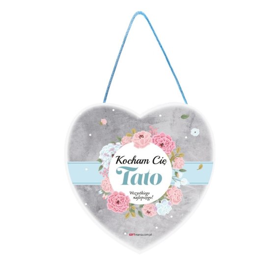 Serce do zawieszenia wzbogacone lakierem UV z napisem "Kocham Cię Tato"