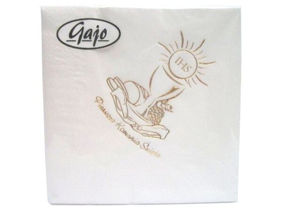 Serwetka 33x33 Komunia Św - Eucharystia biały złoty napis SKE-0001