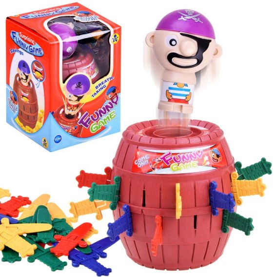 Gra polega na wkładaniu szabli do wybranych przez siebie otworów w beczce. Jeżeli zrobisz to niezręcznie, Pirat wyskoczy z beczki, a Ty... przegrywasz. Gra wymaga zręczności i buduje napięcie. Zasady są bardzo proste i gra daje dużo frajdy.