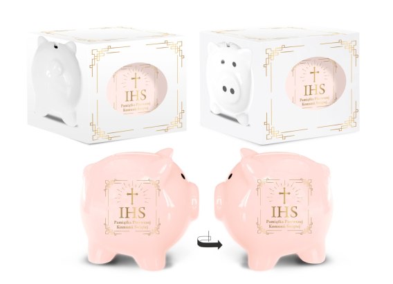 Skarbonka świnka - Pamiątka Komunii Świętej krzyżyk