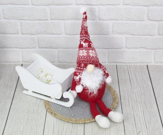 Skrzat świąteczny z długimi nogami i wełnianą czapką -CZERWONY 55x18 cm NT1531