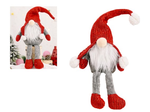 Skrzat świąteczny z długimi nogami i wełnianą czapką SZARO-CZERWONY 55x20 cm NT1494