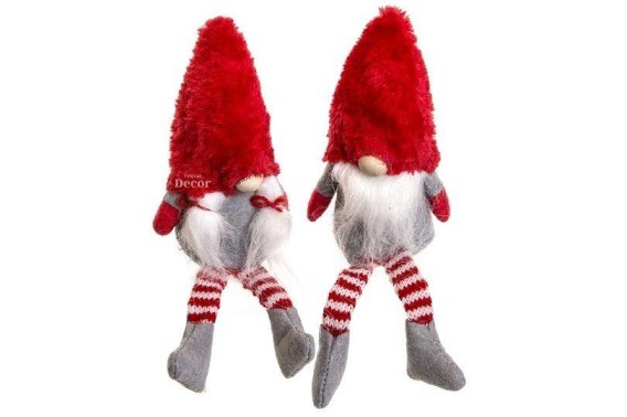Skrzat z długimi nogami z czerwoną futrzaną czapką 14cm OZB06639