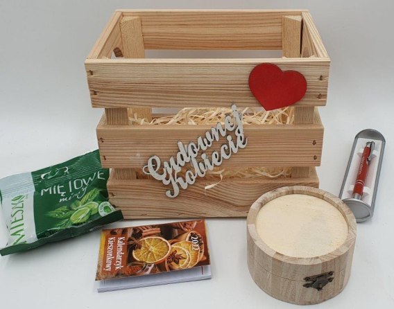 Skrzynka drewniana +prezenty dla Cudownej Kobiety