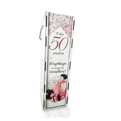 Skrzynka pudełko 33,5 x 9,5cm na butelkę alkoholu 50 Urodziny kolor ELEGANT PANI 3311-EPI50