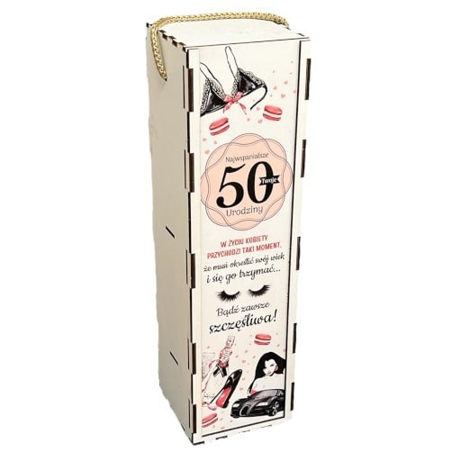 Skrzynka pudełko 33,5 x 9,5cm na butelkę alkoholu 50 urodziny kolor PANI GADŻET 3311-PIG50