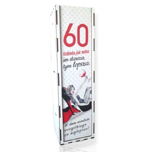 Skrzynka pudełko 33,5 x 9,5cm na butelkę alkoholu 60 urodziny kolor SZPILKA 3311-SZ60