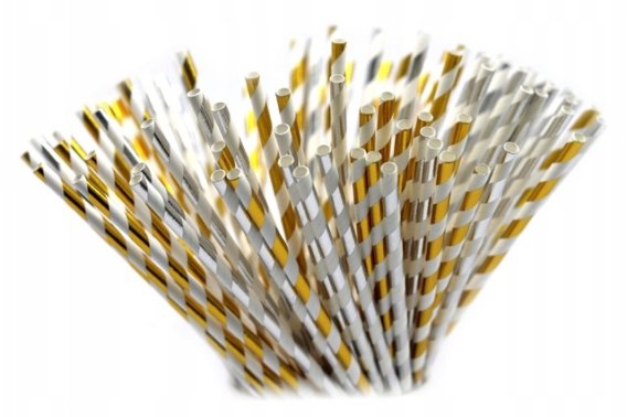 Słomki papierowe złote i srebrne paski 205x6mm 10szt. x10paczek | 80-99