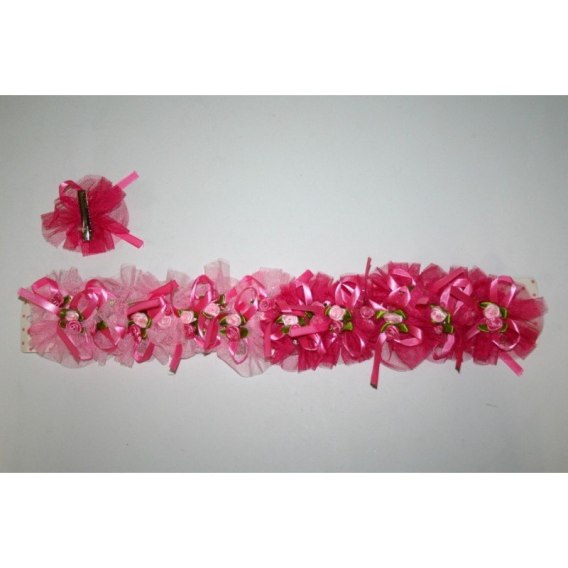 Spinka krokodyl 20szt TIUL Z RÓŻYCZKĄ RÓŻ F5388