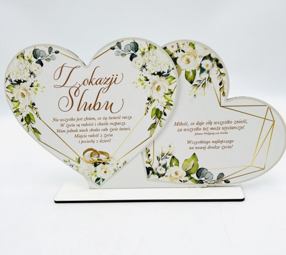 Stojak dwa serca DD kolor kwiat ECRU- Z okazji ślubu 3305-KE