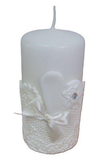 Świeca pieńkowa KL-4 serce w koronce matowa biała