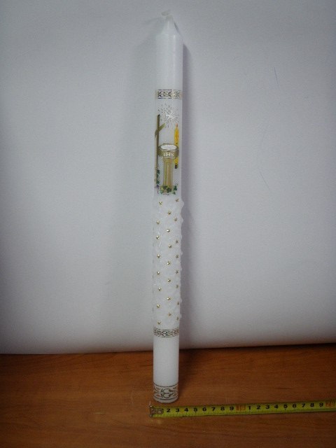 Świeca ręcznie zdobiona gromnica KOMUNIA w kartoniku GR-001