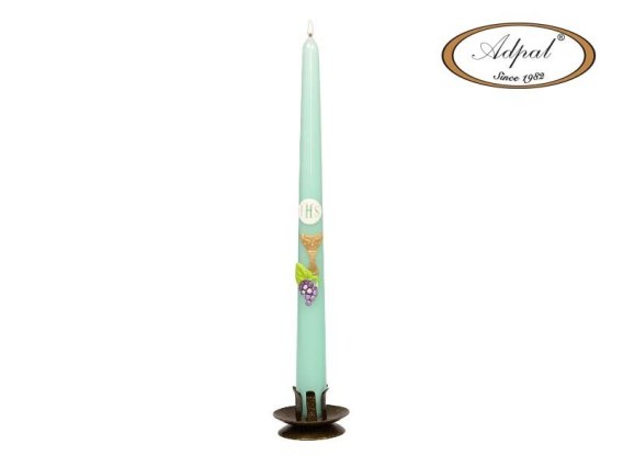 Świeca stożkowa Komunijna z hostią IHS, jasny miętowy , 29 cm - 4 szt.