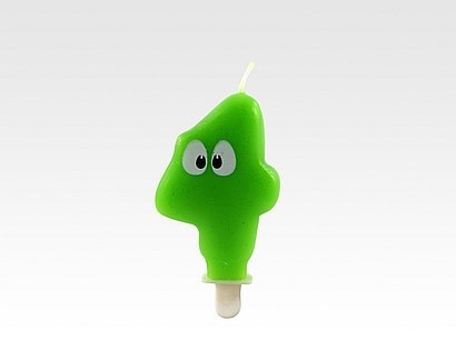 Świeczka "4" H:7,5cm ZIELONA Z OCZAMI 24 szt. 62-74