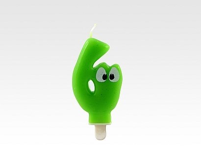 Świeczka "6" H:7,5cm ZIELONA Z OCZAMI 24 szt. 62-76