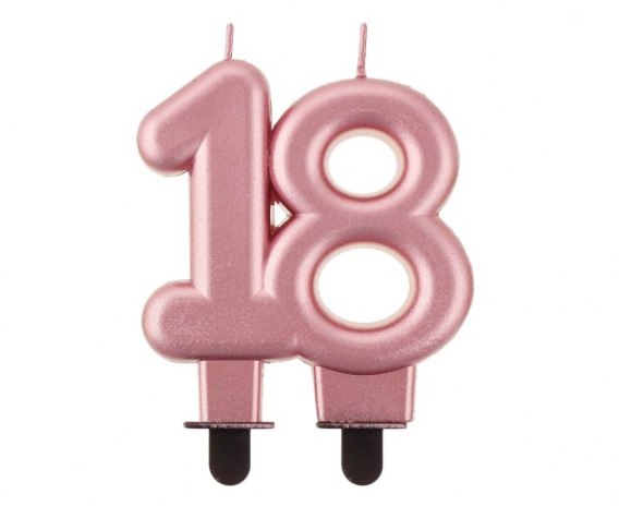 Świeczka B&C cyferka "18" różowo-złota 8cm | PF-SCRZ18