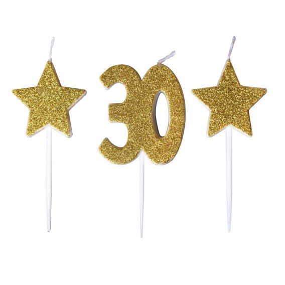 Świeczki urodzinowe 3szt. 30 złote | SH-588-30