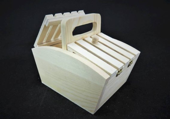 Szkatułka drewniana z rączką niciarka do decoupage 17,5x12,5x14