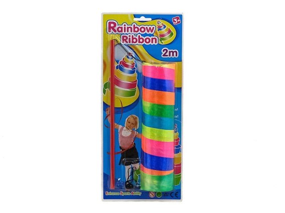 Tęczowa wstążka dł.2m do ćwiczeń gimnastycznych pałeczka dł.30cm