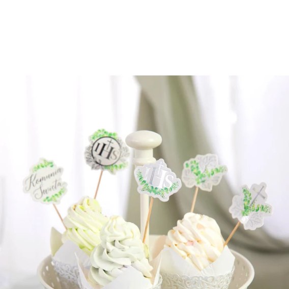 Toppery na tort komunijny Eukaliptus srebrny 5szt. zestaw 132005
