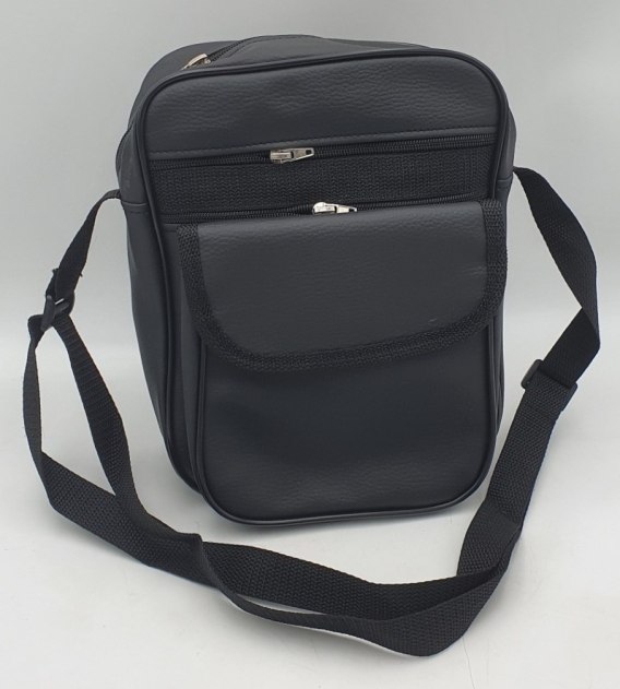 Torba męska 22 x 29cm z dwoma zamkami i kieszenią eco skóra czarna
