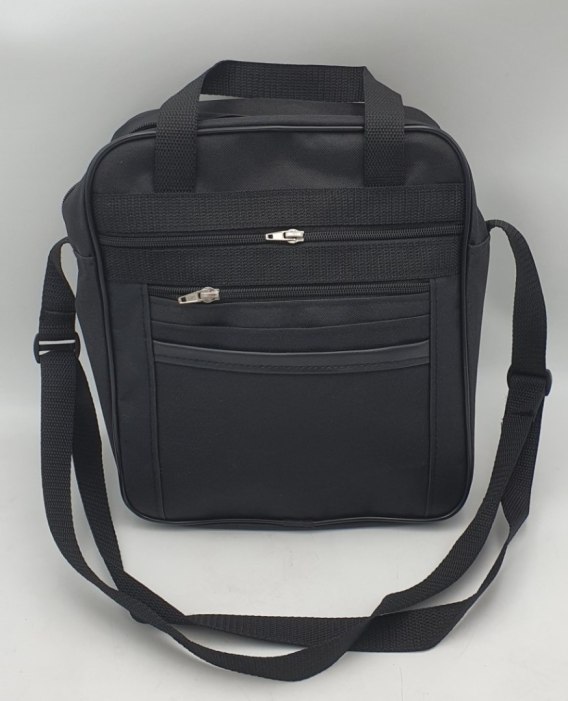 Torba męska 27 x 30 z dwoma zamkami materiał czarna