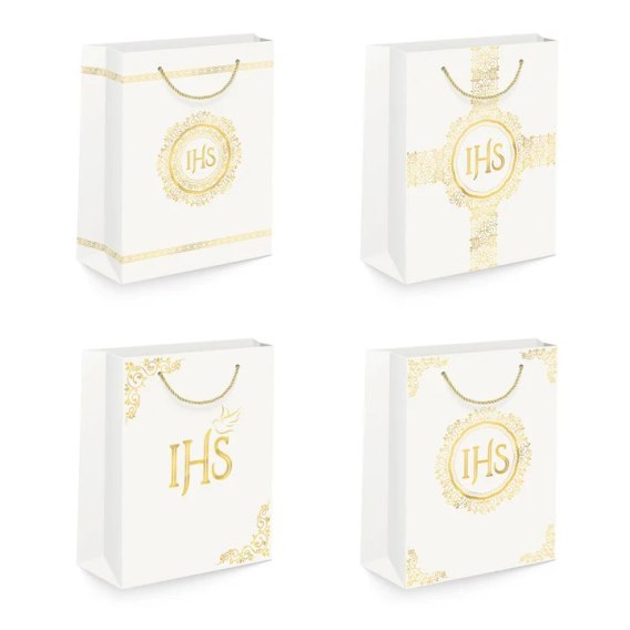 Torebka 12szt na prezenty 26 x 32 x 12cm IHS biało-złota 127469