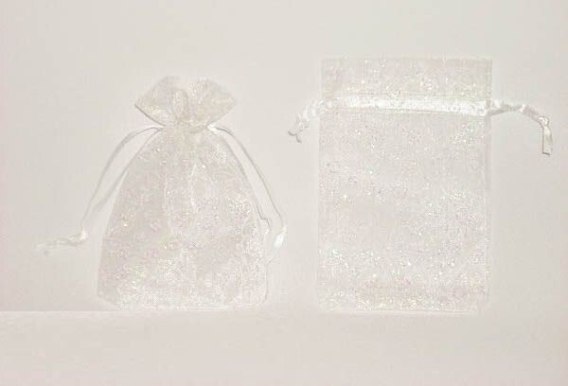 Torebka z materiału 2750 biała brokat 15x11cm - 12szt. Tort-0074