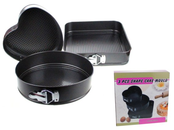 Tortownice, formy do pieczenia czarne mix kształtów 27,26,24 cm - kpl 3 szt BLS-107