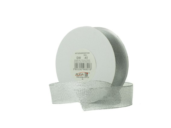 Wstążka brokatowa srebrna 25mm x 32m | DW25-40